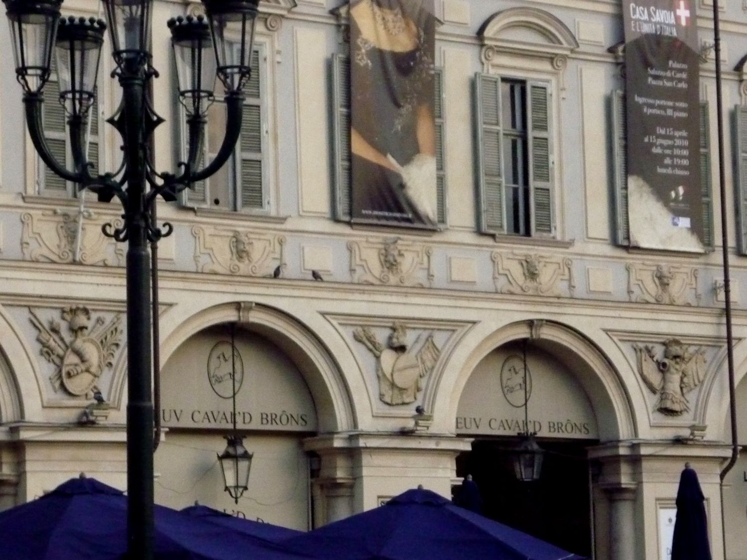 La place San Carlo héberge une statue équestre d'Emmanuel-Philibert de Savoie, donc...et notre "bouiboui" est au 155.