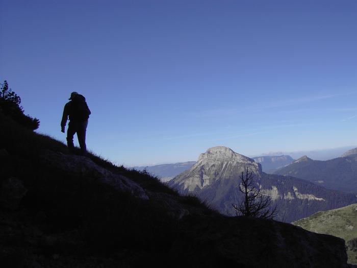 La Folatière, curieux monolithe en montant à Chamechaude depuis le col de Porte. | ||