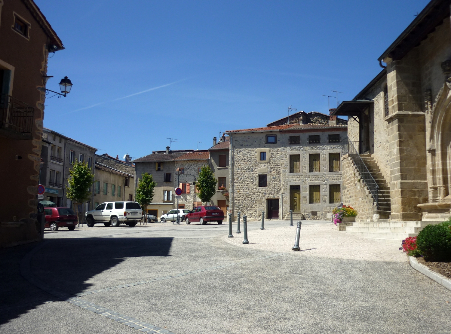 La place séparant l'église du café.